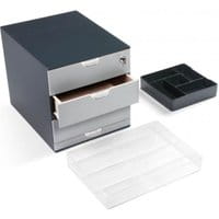 - Pojemny organizer do przechowywania i organizacji akcesoriów kawowych codziennego użytku. - Zestaw składa się z organizera do kawy COFFEE POINT BOX, przegródki do kawy/herbaty COFFEE POINT CASE, przegródki na sztućce i tacki COFFEE POINT CADDY. - Przeznaczony do kontaktu z żywnością - Nadaje się do mycia w zmywarkach - Górna szuflada organizera zamykana na zamek cylindryczny - Wykonany z wysokiej jakości tworzywa ABS - Wysoka stabilność dzięki antypoślizgowymi podkładkom - Gumowe nóżki zapobiegają zarysowaniu powierzchni blatu - Z wysuwanymi szufladami zawierającymi blokady - Jednostka sprzedaży 1 szt.