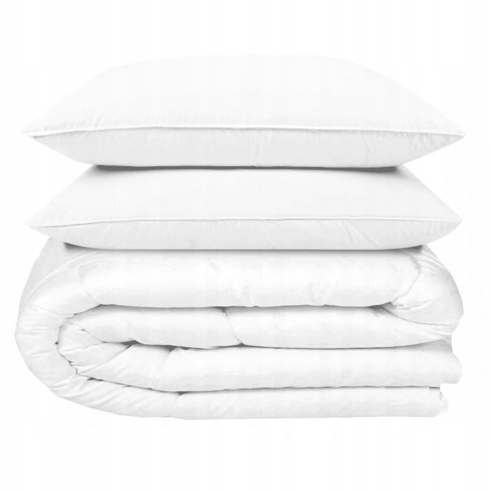 Zapewnij sobie wysoką jakość snu, dzięki naszym kołdrom i poduszkom. Przedstawiamy kołdrę całoroczną wykonaną z wysokiej jakości flizeliny, która posiada właściwości antyalergiczne. Zarówno kołdra i poduszki są bardzo miękkie w dotyku. Posiadają właściwości bardzo dobrze przepuszczające powietrze, dzięki czemu skóra nie poci się podczas snu. Dzięki zastosowaniu wysokiej jakości materiałów kołdra nie odkształca się i nie traci sprężystości przez bardzo długi czas. Kołdra jest hipoalergiczna, antybakteryjna, chroni przed pleśnią oraz roztoczami. Nie wahaj się i kup już teraz! Kołdra całoroczna 200x220 cm + 2 poduszki 70x80 cm Właściwości: Poszycie: wysokiej jakości flizelina. Posiada właściwości antyalergiczne. Gęsty splot tkaniny gwarantuje nie przepuszczanie wypełnienia. Zdrowy i przyjemny sen dzięki właściwościom termoregulacyjnym. Wymiary kołdry: 200x220 cm. Wymiary poduszki: 70x80 cm. Zestaw zawiera: Kołdra x 1. Poduszka x 2. Wysokiej jakości kołdra w zestawie z dwoma poduszkami zapewnią Ci zdrowy i komfortowy sen Dzięki zastosowanym materiałom zarówno kołdra jak i poduszki są odpowiednie dla alergików Zapraszamy do zapoznania się z pozostałymi naszymi produktami w kategorii: kołdry