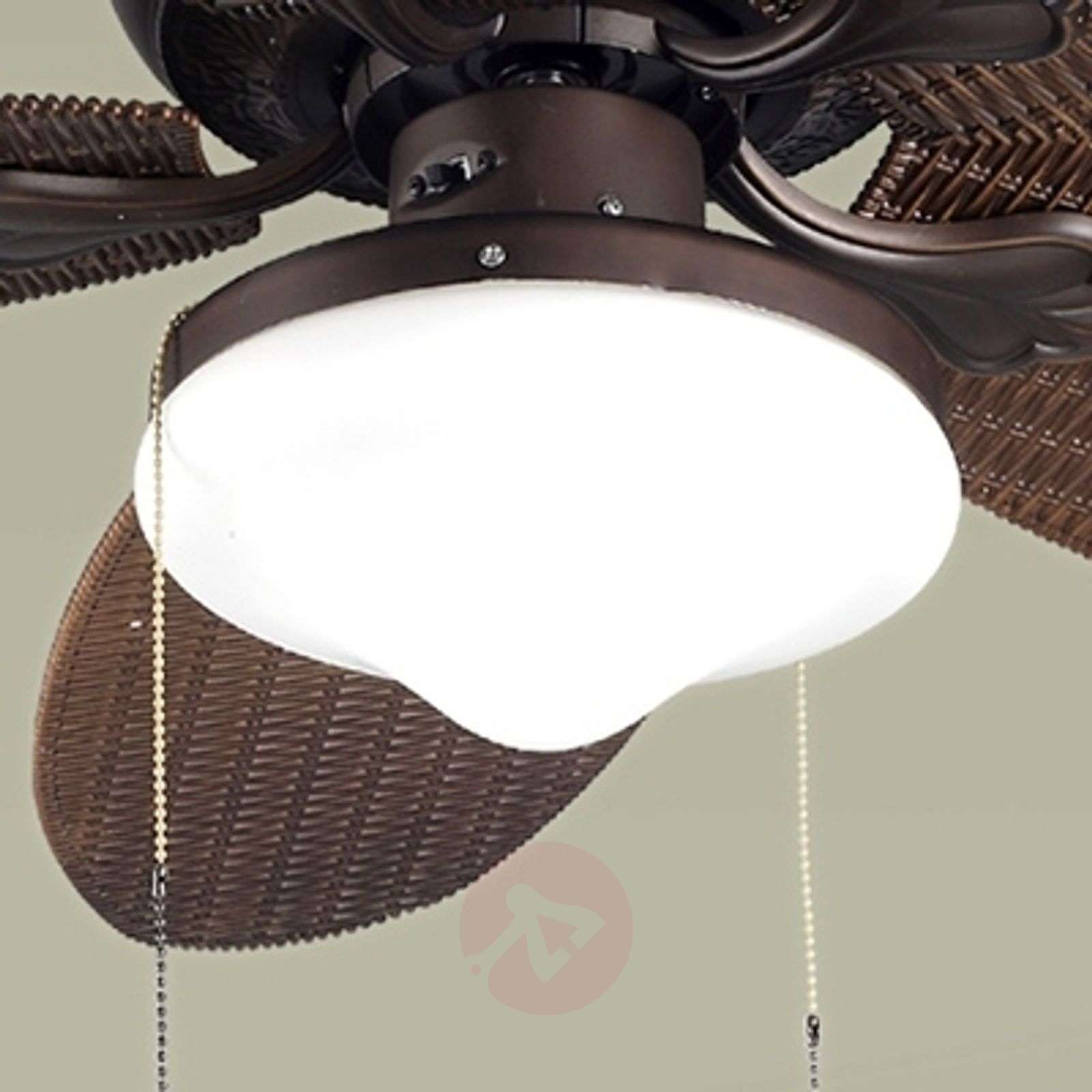 Zestaw oświetleniowy do wentylatora sufitowego Phuket z białym szklanym kloszem Dzięki zestawowi oświetleniowemu Phuket nie tylko zapewni przyjemną atmosferę, lecz również energooszczędne oświetlenie. Klasa efektywności energetycznej: A++