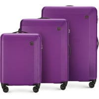 Komplet walizek z kolekcji ModernZestaw bagażu wykonanyz ABS-u, który charakteryzuje się zwiększoną odpornością na zniszczenia. Cechą charakterystyczną kolekcji jest kolorowa wstawka walizki, która biegnie wzdłuż suwaka. Walizka posiada szereg funkcjonalnych rozwiązań, jak trzystopniowa, teleskopowa rączka z blokadą oraz elastyczne uchwyty do ręki oraz zamek szyfrowy. W ofercie występują 3 kolory: zielony, czarny oraz fioletowy.Nasza rada:za sprawą wyrazistych akcentówbagaż jest lepiej widoczny i przez to łatwiej rozpoznawalny wśród innych walizek. wyposażone w cztery podwójne kółka tulejowane; teleskopowa rączka oraz elastyczny uchwyt gumowy z funkcją powrotu; zabezpieczenie w postaci zamka szyfrowego uniemożliwiającego osobom niepożądanym dostęp do wnętrza; komora z regulowanymi pasami zabezpieczającymi ubrania przed przemieszczaniem; komora zamykana na suwak; kieszeń z siatki zamykana na suwak; mała kieszeń zamykana na suwak; mała walizka spełnia wymogi bagażu podręcznego. Podane wymiary obejmują również elementy wystające, takie jak rączki czy kółka.