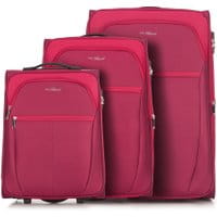 Komplet walizek z kolekcji VIP Collection wykonany z poliestru. Posiada dwa kółka oraz podnóżek, utrzymujący stabilność walizki. Ponadto wysuwany uchwyt wpływający na komfort prowadzenia bagażu oraz zamek szyfrowy. Wewnątrz: komora główna zamykana na suwak z regulowanymi pasami zabezpieczającymi ubrania; kieszeń z siatki zamykana na suwak oraz dwie otwarte kieszenie. Zewnątrz: z przodu dwie kieszenie zamykane na suwak; suwak umożliwiający powiększenie walizki o 3 cm. W skład kompletu wchodzą: Mała walizka na kółkach V25-3S-231; Średnia walizka na kółkach V25-3S-232; Duża walizka na kółkach V25-3S-233. Podane wymiary obejmują również elementy wystające, takie jak rączki czy kółka.