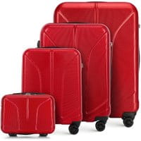 Set walizek z kolekcjiLinia Urban Zestaw walizek podróżnych stworzony z tworzywa o podwyższonej wytrzymałości -polikarbonu. Design funkcjonalny, a zarazem zgodny z aktualnymi trendami zadowoli wszystkich podróżników będących także miłośnikami mody. W ofercie znajduje się kilka wersji kolorystycznych: zielona, granatowa, czerwona oraz czarna. walizki wyposażone wcztery podwójne kółkaułatwiające manewrowanie; wysuwany uchwyt oraz gumową rączkę ułatwiającą przenoszenie bagażu; system TSA, bardzo przydatny w przypadku rewizji bagażu przez służby celne -gwarantuje on bezinwazyjne otwarcie walizki oraz jej ponowne zamknięcie, bez uszkodzenia zamka; komora głównaz regulowanymi pasamizabezpieczającymiubrania przed przemieszczaniem; kieszeń zamykana na suwak; kieszeń z siatkizamykana na suwak; komora zamykana na suwak. W skład setu wchodzą: Kosmetyczka 56-3P-814 Mała walizka na kółkach 56-3P-811 Średnia walizka na kółkach 56-3P-812 Duża walizka na kółkach 56-3P-813 Podane wymiary obejmują również elementy wystające, takie jak rączki czy kółka.