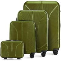Set walizek z kolekcjiLinia Urban Zestaw walizek podróżnych stworzony z tworzywa o podwyższonej wytrzymałości -polikarbonu. Design funkcjonalny, a zarazem zgodny z aktualnymi trendami zadowoli wszystkich podróżników będących także miłośnikami mody. W ofercie znajduje się kilka wersji kolorystycznych: zielona, granatowa, czerwona oraz czarna. walizki wyposażone wcztery podwójne kółkaułatwiające manewrowanie; wysuwany uchwyt oraz gumową rączkę ułatwiającą przenoszenie bagażu; system TSA, bardzo przydatny w przypadku rewizji bagażu przez służby celne -gwarantuje on bezinwazyjne otwarcie walizki oraz jej ponowne zamknięcie, bez uszkodzenia zamka; komora głównaz regulowanymi pasamizabezpieczającymiubrania przed przemieszczaniem; kieszeń zamykana na suwak; kieszeń z siatkizamykana na suwak; komora zamykana na suwak. W skład setu wchodzą: Kosmetyczka 56-3P-814 Mała walizka na kółkach 56-3P-811 Średnia walizka na kółkach 56-3P-812 Duża walizka na kółkach 56-3P-813 Podane wymiary obejmują również elementy wystające, takie jak rączki czy kółka.