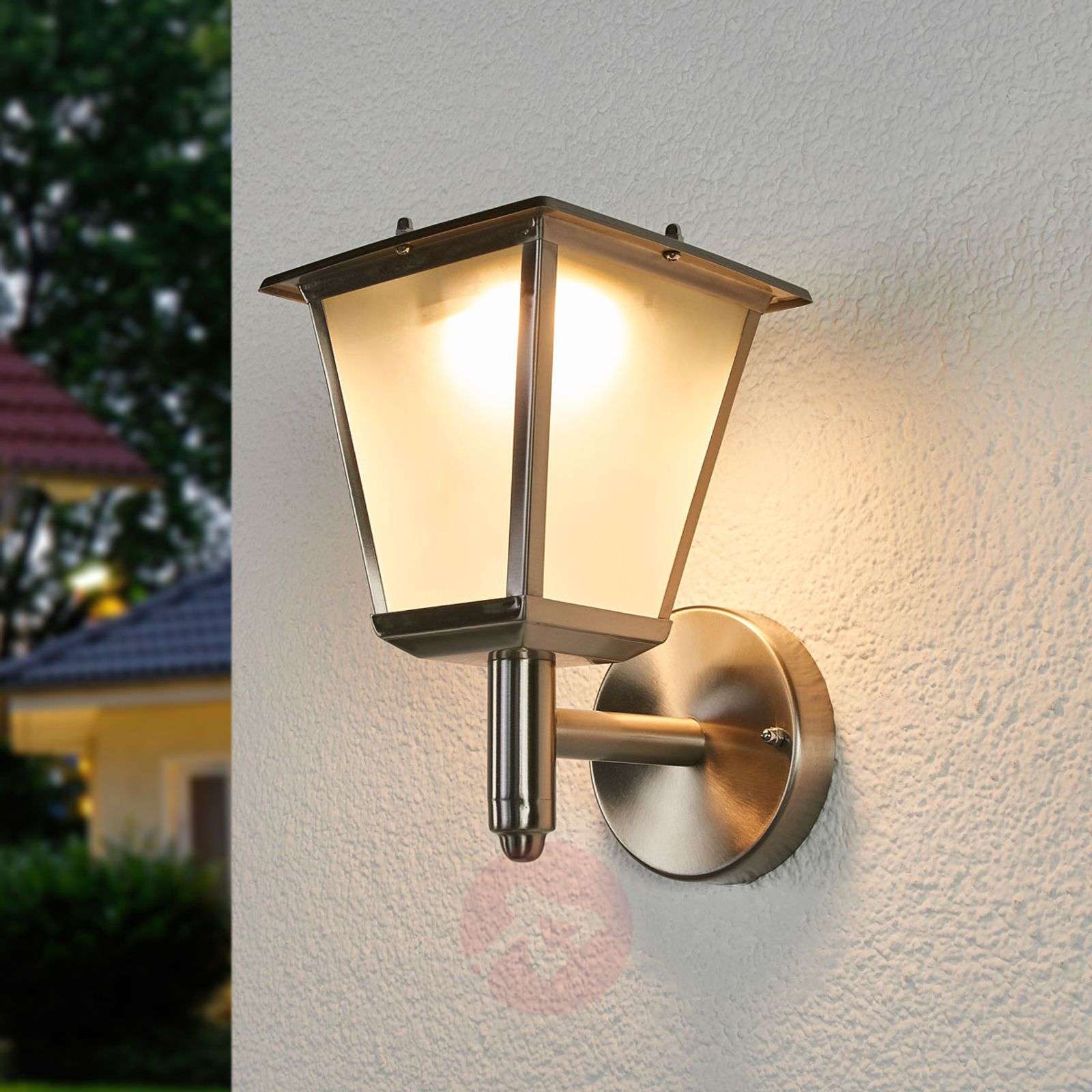 Solarny kinkiet zewnętrzny LED Anica ze stali szlachetnej Anica przypomina klasyczną latarnię i skrywa w swoim wyglądzie pewien rodzaj nostalgii. Szklane powierzchnie są matowe, dzięki czemu rozsyłają bardziej miękkie światło, które nie powoduje efektu oślepiania. W górnej części ściennej lampy zewnętrznej ze stali szlachetnej znajduje się panel solarny, który przetwarza światło słoneczne na prąd, dzięki czemu dioda LED wewnątrz lampy solarnej zapewnia w nocy łagodne oświetlenie orientacyjne. Klasa efektywności energetycznej: A+