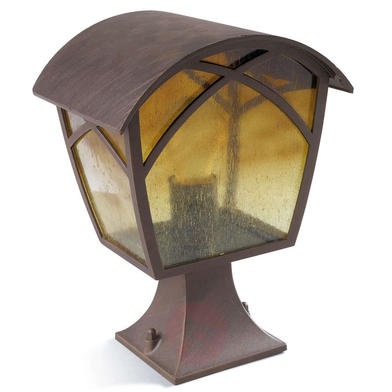 Atrakcyjna lampa cokołowa ALBA do zastosowań zewnętrznych Słupek oświetleniowy, którego wygląd można dopasować do indywidualnych potrzeb, stanowi przepiękną atrakcję wizualną. Rdzawobrązowa obudowa świetnie podkreśla dwa warianty lampy – ze szkłem w romantycznej kolorystyce bursztynu, które pozwala zajrzeć do wnętrza lampy, jak i w wersji matowobiałej, która nadaje lampie nowoczesne akcenty. Słupek oświetleniowy sprawdza się najlepiej w ogrodzie lub na tarasie, gdzie zapewnia nastrojowe światło i tworzy przytulną atmosferę. W zestawie dostarczane są zarówno szkła w kolorze bursztynu, jak i szkła w satynowanej bieli, które pozwalają na indywidualne dopasowanie lampy do otoczenia. Klasa efektywności energetycznej: A++