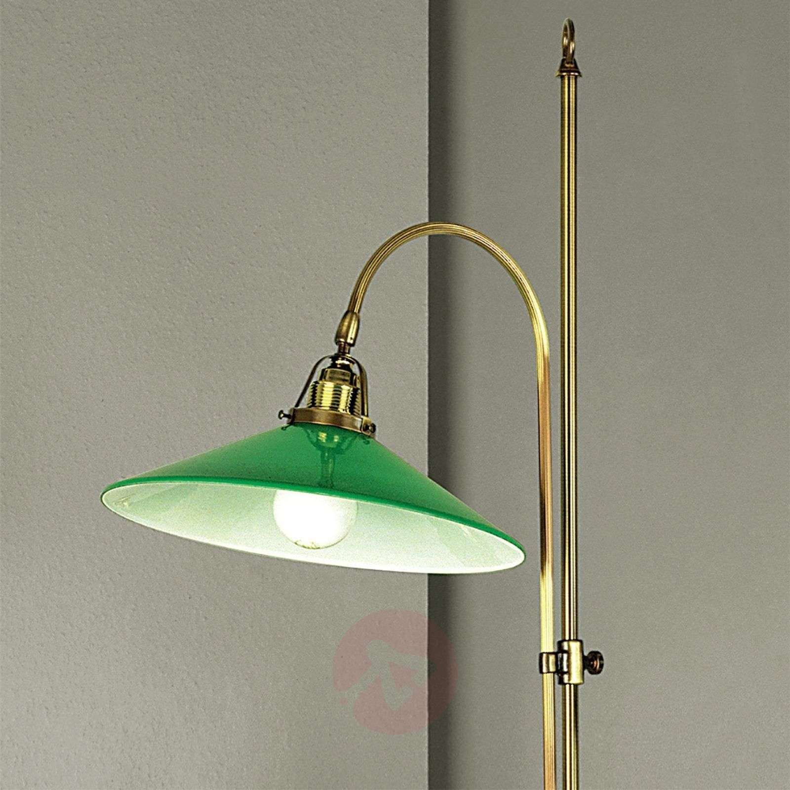 Lampa stojąca VERDINA z zielonym kloszem Zielony klosz i elementy z powierzchnią w kolorze starzonego mosiądzu tworzą w tej lampie stojącej niespotykane, lecz zaskakująco harmonijne połączenie. Lampy tej nie da się przeoczyć! Dobrze wkomponuje się we wnętrza urządzone w stylu klasycznym, a w pomieszczeniach o nowoczesnym wyposażeniu będzie stanowiła kontrastowy dodatek. Wyposażona w regulację wysokości. Nachylenie szklanego klosza można indywidualnie regulować dzięki kulowemu przegubowi. Na zapytanie lampa jest dostępna z kloszem w kolorze kobaltowo-niebieskim, szampana lub białym. Lampy te spełniają najwyższe wymagania w zakresie wysokiej jakości, elegancji i trwałości. Tutaj połączenie kreatywności projektantów i austriackiej sztuki rzemieślniczej pozwala na stworzenie produktów, znajdujących uznanie na arenie międzynarodowej. Od roku 1948 lampy tego producenta są wytwarzane w 100 % w Austrii, co gwarantuje dostępność części zamiennych przez długie lata. Na zapytanie dostępna także w innych rozmiarach i wykończeniach powierzchni. Klasa efektywności energetycznej: A++