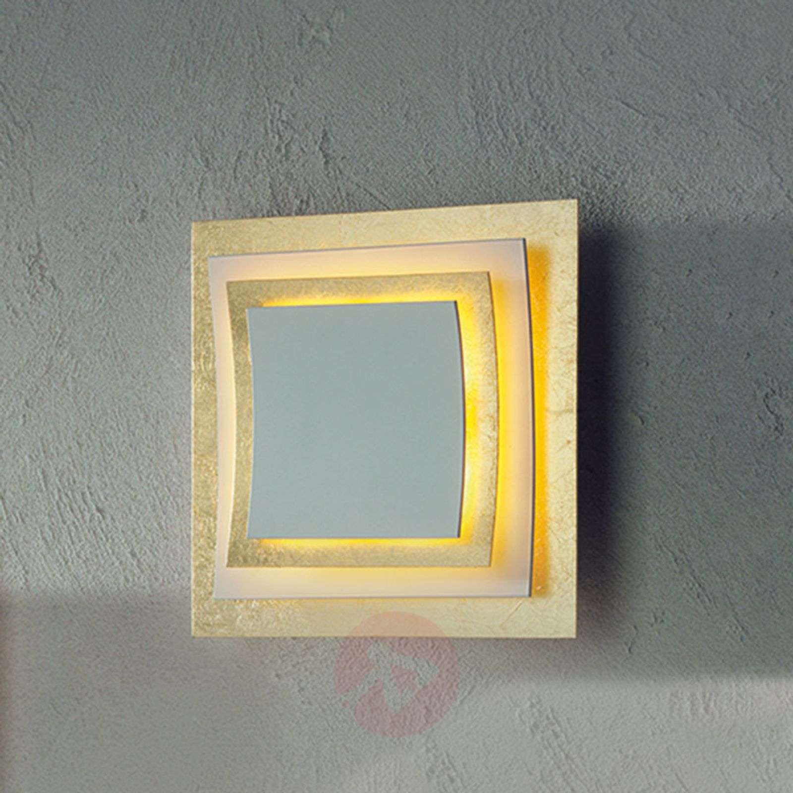 Nastrojowe światło lampy ściennej i sufitowej Pages połyskującej złoceniami Lampa sufitowa Pages będzie doskonałym wyborem, jeśli chcemy wypełnić pomieszczenia mieszkalne łagodnym, czarującym światłem. Ta ekskluzywna lampa designerska wygląda, jakby kilka kartek papieru, po angielsku - pages, leżało jedna na drugiej. Aby osiągnąć ten efekt ułożono warstwowo aluminium powleczone złotą folią. Strumień światła lampy halogenowej przenika od tyłu, poprzez osłonę do przodu i dociera na zewnątrz w postaci subtelnego, pośredniego blasku. Ta wysokiej jakości lampa może być montowana także na ścianie. Estetyka oświetlenia i wnętrz" to idea, która jest myślą przewodnią firmy Escale, kreującej obiekty ponadczasowe i pobudzające zmysły - produkty indywidualistów dla indywidualistów, harmonijnie łączące pomysł, kształt i funkcjonalność. Tak powstają dekoracje świetlne rodzimej produkcji, które nie poddają się modom i trendom. Wyprodukowane w Niemczech! " Klasa efektywności energetycznej: C
