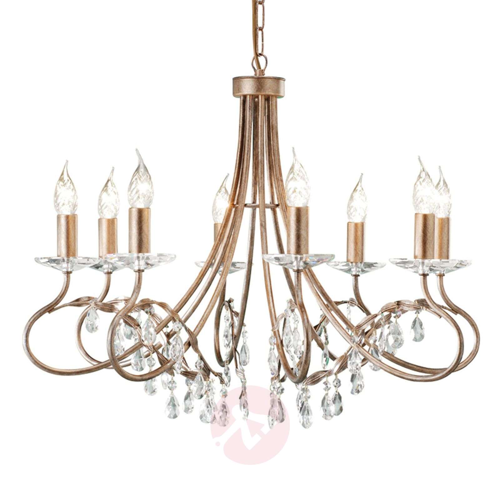 Szlachetny żyrandol, który można przekształcić w lampę sufitową Żyrandol CHRISTINA pokryto antyczną srebrną/złotą patyną, która nadaje lampie raz ciemniejszego - złotego, a raz jaśniejszego - srebrnego połysku. Za połyskujące efekty świetlne odpowiedzialne są kryształy, które pojedynczo zwisają z krawędzi żyrandola. Żyrandol CHRISTINA można na życzenie przekształcić w lampę sufitową. Wyprodukowano w Anglii. Klasa efektywności energetycznej: A++