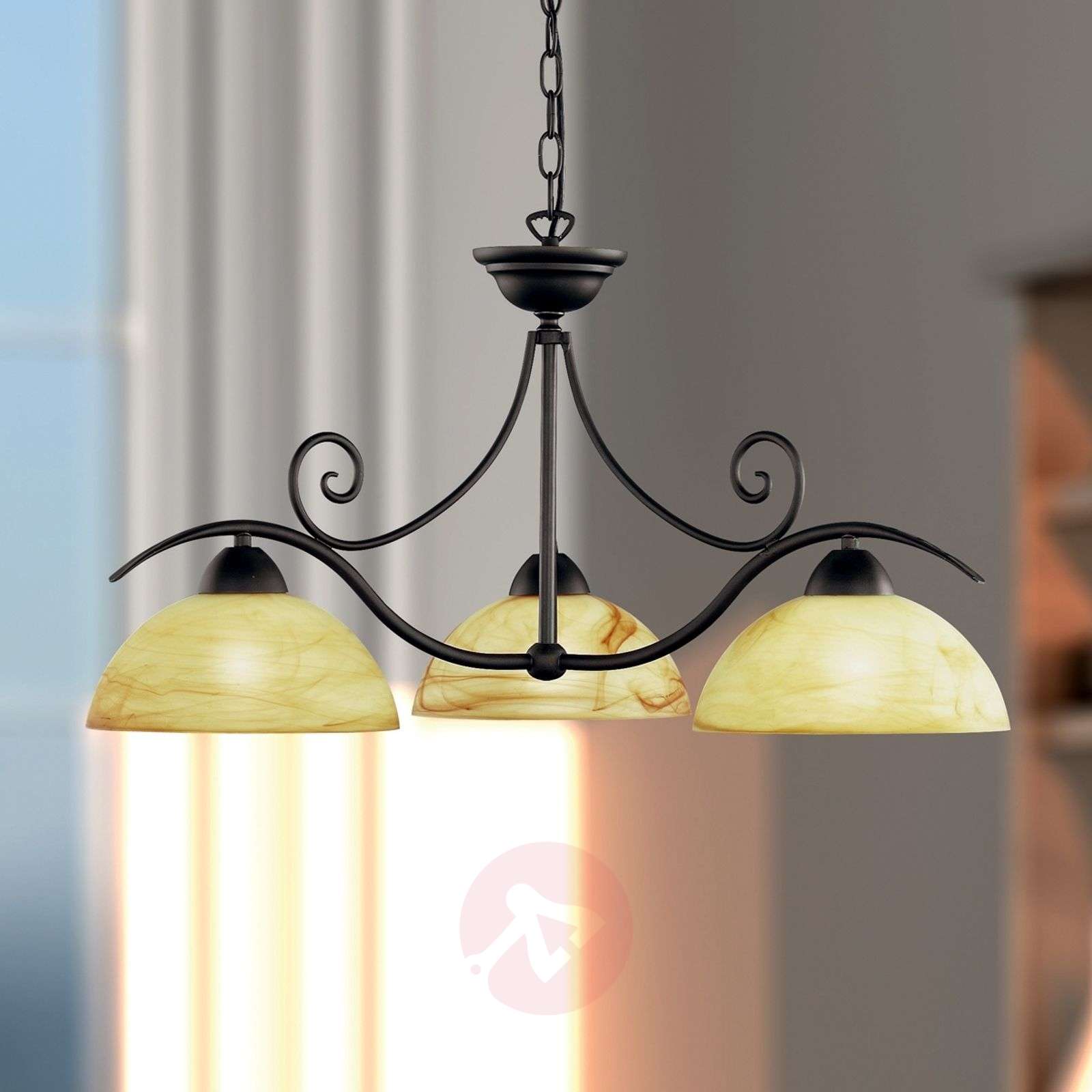Stylowy żyrandol w stylu dworkowym Ciepłe alabastrowe szkło zapewni atmosferę dobrobytu oraz nastrojowe światło w Państwa domu. Długość łańcucha z kablem instalacyjnym można dowolnie skracać. Klasa efektywności energetycznej: A++