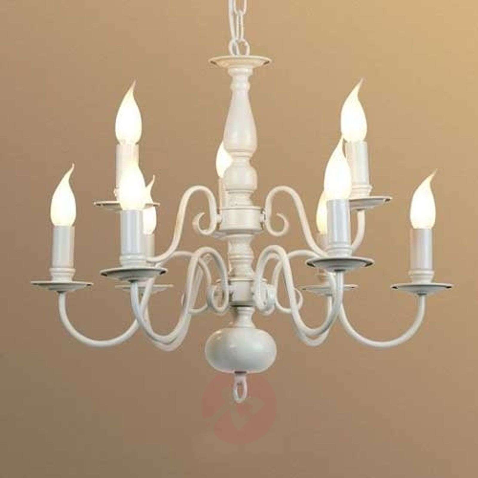 Piękny żyrandol MAYRA o rustykalnym charakterze Żyrandol został w całości wykonany w kolorze białym, dzięki czemu jest niezwykle wszechstronny i dobrze się sprawdza w wielu wnętrzach, niezależnie od ich stylu. Ponadto żyrandol MAYRA posiada prosty wzór i stanowi przeciwieństwo obficie zdobionych modeli, które są obecnie często spotykane. Powyższe cechy sprawiają, że żyrandol świetnie wygląda i jest przykładem lampy, która może być wykorzystywana zarówno w klasycznie, jak i rustykalnie urządzonych wnętrzach, i sprawdza się równie dobrze jako element kontrastowy w nowoczesnych pomieszczeniach. Klasa efektywności energetycznej: A++