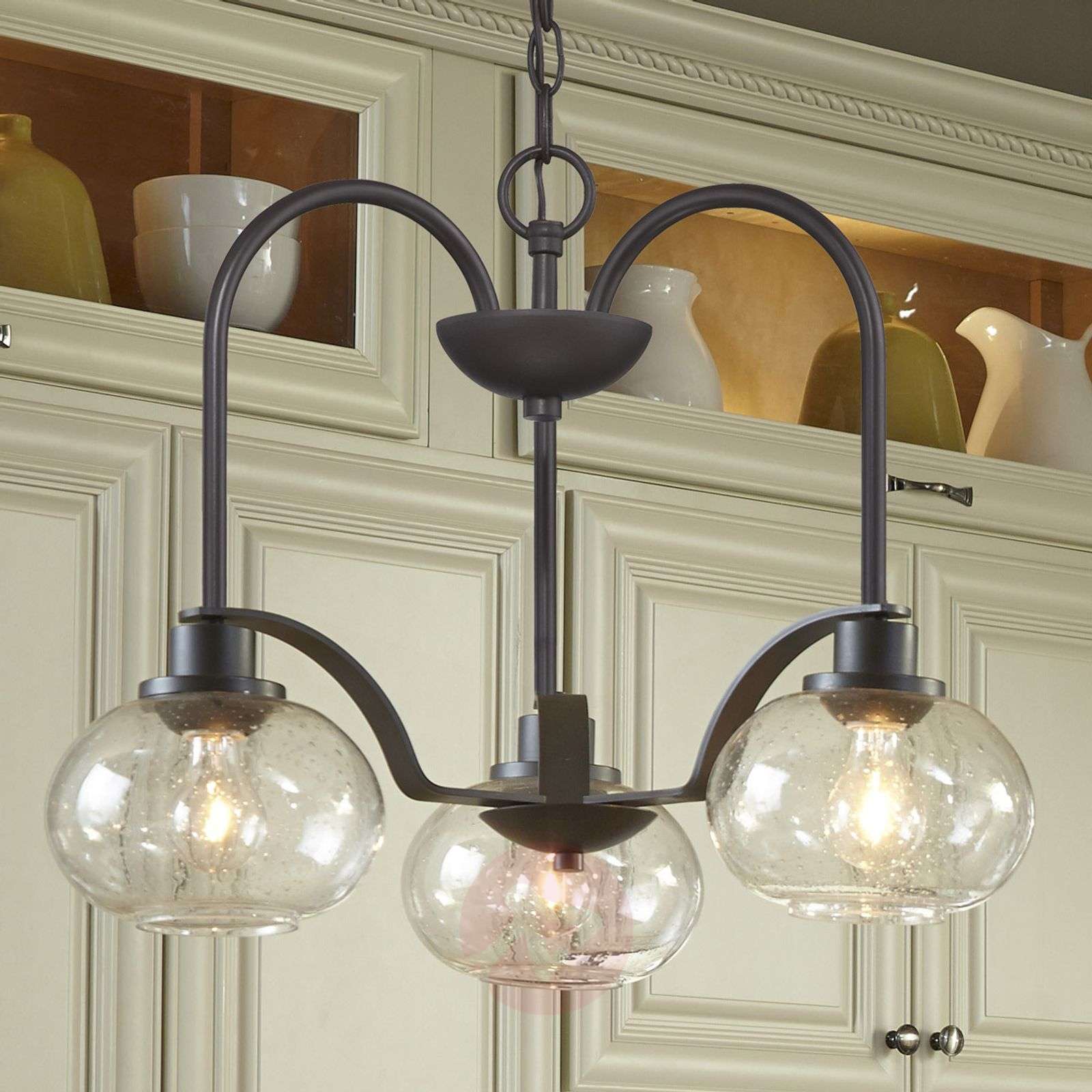 Żyrandol vintage Trilogy – wizualne nawiązanie do wynalazku Edisona Ten niezwykły żyrandol z trzema kloszami ze szkła strukturalnego wygląda bardzo nowocześnie, mimo odrobiny nostalgii, ponieważ styl vintage jest bardzo modny. Najbardziej uderzającą cechą Trilogy są żarówki w stylu vintage, które zamontowano w ładnych szklanych kloszach. Zawieszenie z wykończeniem w kolorze old bronze efektownie podkreśla styl vintage tego pięknego żyrandola. Klasa efektywności energetycznej: A++